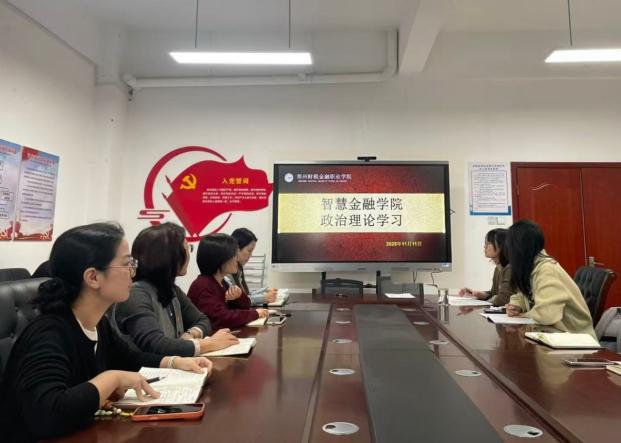【通讯员:郎亚萍】2025年11月11日中午,智慧金融学院在明德楼214会议室召开政治理论学习会议,会议由智慧金融学院党支部书记赵碧漪主持,全体教职工参会。