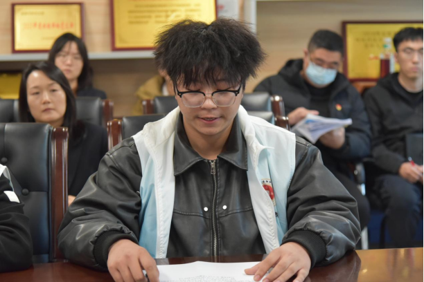 随后,学生志愿者代表进行了发言交流。惠孔莹同学汇报了“金融防诈骗进社区”专项活动,服务团队以“虚假养老项目”等典型诈骗案例为切入点,运用通俗易懂的语言向居民普及防骗知识,推动专业知识转化为实用技能。刘浩洪同学分享了校馆联动实践经验,讲述在中原金融博物馆担任讲解员的收获,在传递金融历史文化的同时,也进一步深化了对专业的理解。苏晨阳同学则重点介绍了志愿服务模式从“被动响应”到“主动创新”的转变,以打造“财商训练营”、研发“金钥匙”课程体系为标志,推动财商教育主动走进社区与小学。