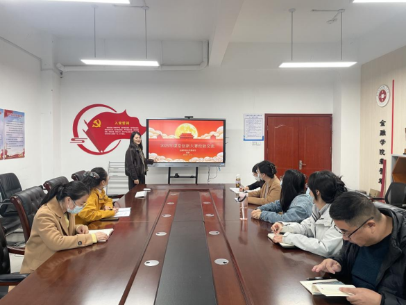 随后,各教研室分别组织开展了课堂创新大赛经验交流。王文硕和胡静两位老师结合自身参赛实践,围绕课程设计核心原则、赛前筹备关键要点、实战参赛心得感悟等维度,系统分享了《商业银行信贷业务》《商业银行综合柜台业务》两门课程的参赛经验,为大家提供了可借鉴的实践范本。