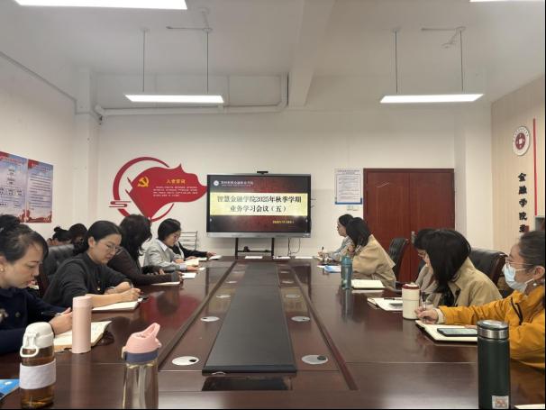 【通讯员:李贺卿】11月4日下午,智慧金融学院在明德楼214会议室组织开展业务学习。会议由综合办公室主任郭会芳主持,院长吕永霞、党支部书记赵碧漪、副院长赵歌及全体教职工参会。
