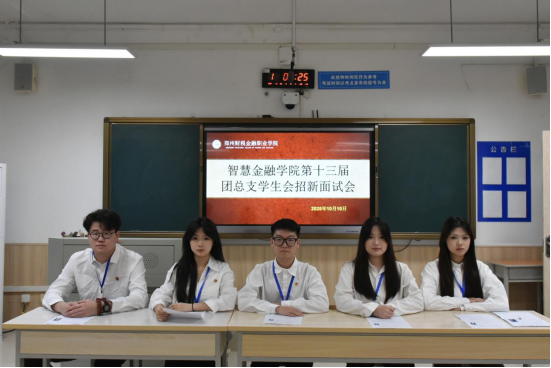 【通讯员:苏晨阳】为吸纳新生力量,培养和建设高素质学生干部队伍,智慧金融学院第十二届团总支学生会于2025年10月10日在励行楼4106教室开展纳新工作。本次招新工作分为宣传动员、面试交流两个阶段,吸引了2025级新生的广泛参与。