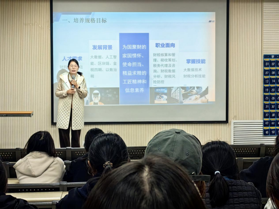 讲座中,张冬冬、张少茹、郭春良三位老师分别围绕金融服务与管理、财税大数据应用、政府采购管理、金融科技应用和财富管理五个专业,系统介绍了专业发展现状、未来前景、人才培养目标、课程体系、毕业要求、学习建议及职业规划等内容,为新生呈现了内容丰富、启发性强的“专业第一课”。三位老师勉励同学们珍惜大学时光,在学业上深耕细作,在实践中锻炼成长,努力成为具备扎实专业素养、综合能力与创新精神的新时代金融人才。