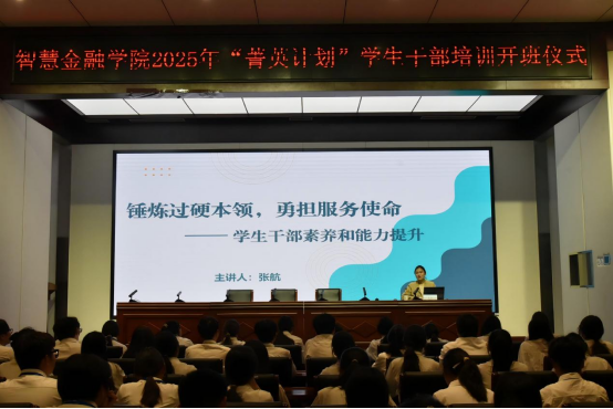 【通讯员:苏晨阳】为强化学生干部队伍建设,有效提升其综合素养与服务能力,助力学生干部更好地服务同学、衔接师生,10月30日下午,智慧金融学院在厚德楼二楼报告厅举办“菁英计划”学生干部培训第一期——《锤炼过硬本领,勇担服务使命——学生干部素养和能力提升》。本次讲座由学团办主任张航老师主讲,全体学员参加了讲座。