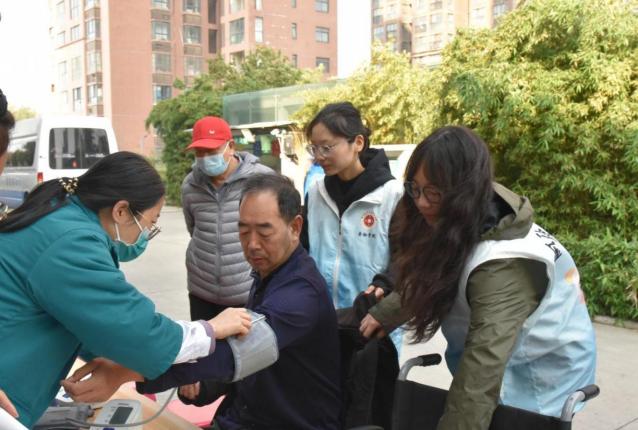 活动现场设置内科、外科、口腔科、中医理疗、血压血糖检测等7个服务台。医护志愿者耐心为居民提供问诊、查体、测量等全面服务,并围绕常见病、多发病开展健康知识普及;学生志愿者则负责就诊引导、秩序维护、协助老人等工作,用青春洋溢的笑容传递“小金宝”的温暖。