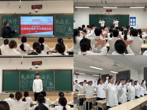 各班级围绕“法治中国建设”“宪法与公民权利保障”“宪法在金融领域的作用”等主题,组织召开了专题班会。结合金融专业特点,各班级通过案例剖析、小组讨论、互动问答等形式,引导学生学习理解宪法与个人成长、职业发展的密切关系,了解宪法在维护经济秩序、保障产权、促进公平竞争等方面的重要作用。累计举办主题班会22场,参与率高达100%,有效增强了学生的宪法观念与法治实践能力,为培养德才兼备、遵法守纪的高素质技能型人才奠定了坚实基础。