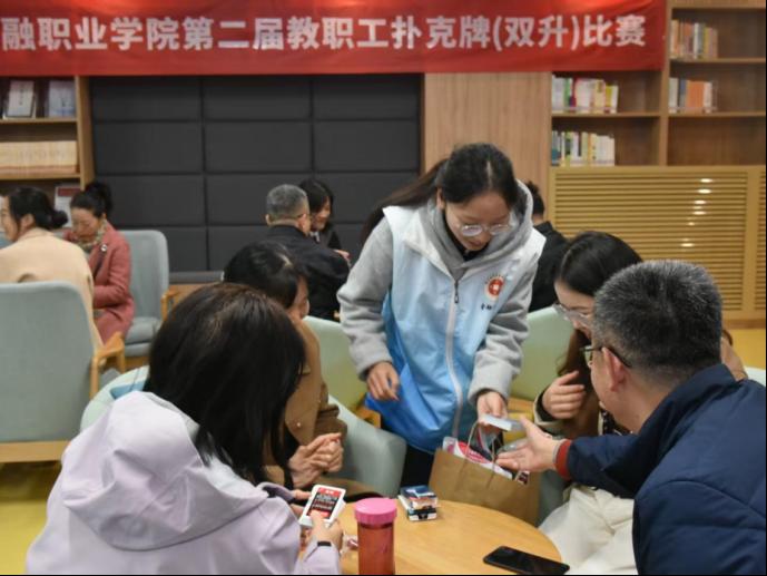 【通讯员:惠孔莹】为保障郑州财税金融职业学院第二届教职工扑克牌(双升)比赛顺利举办,10月28日,智慧金融学院“小金宝”青年志愿者服务队全程参与赛事服务保障工作。志愿者们以细致周到的服务为比赛护航,展现出专业的组织能力和温暖的志愿精神,为这场充满智慧与趣味的竞技活动注入了青春活力。