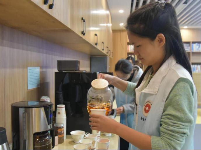 比赛期间,“小金宝”志愿者们成为赛场上一道亮丽的风景线。他们始终面带微笑为老师们递上茶水,及时清理杂物,保持环境整洁有序;面对比赛咨询,他们耐心解答、积极协调,展现出专业的服务素养。志愿者们真诚主动的态度,不仅保障了比赛的顺利进行,更在策略交锋的赛场之外,传递出浓浓的师生情谊与校园温度。