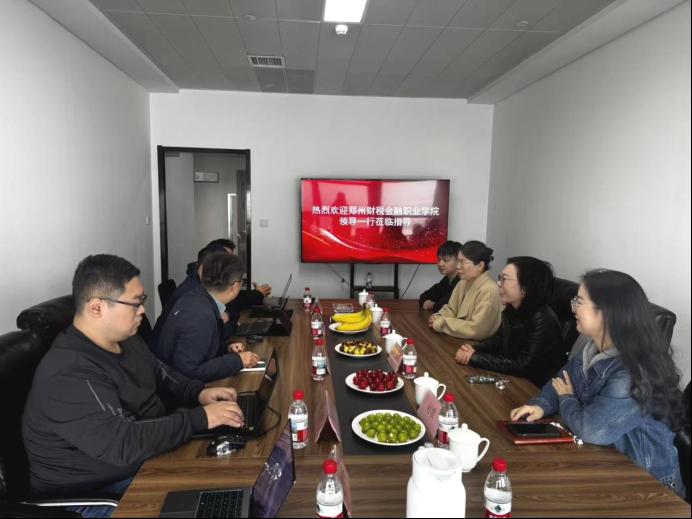国泰新点软件股份有限公司郑州分公司副总经理曹强、总经理助理郎峰、电子交易研发部副经理范大骅、解决方案工程师高阳、高校业务经理徐新建等企业代表热情接待并参与座谈。会上,曹强副总经理介绍了新点科技在公共资源交易、政府采购数字化领域的全国布局及河南实践,重点展示了企业“AI+采购”系列成果与人才需求图谱。吕永霞围绕学院政府采购管理专业的人才培养定位及育人目标作了详细介绍。