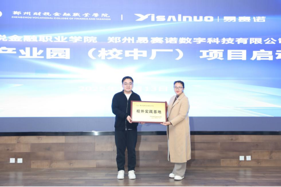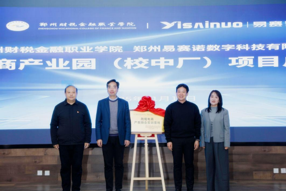 【通讯员:吴玉鑫】2025年11月13日下午,我校与郑州易赛诺数字科技有限公司在学校创业孵化园举行校企合作揭牌暨跨境电商产业园(校中厂)项目启动仪式。校长李晓东、易赛诺公司总经理阮峰等校企双方代表及数字商贸学院师生齐聚一堂,共同见证教育链、人才链与产业链、创新链深度融合的重要时刻。启动仪式由数字商贸学院院长南志光主持。
