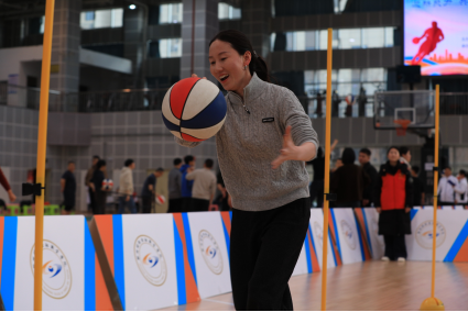 开幕式后,赛事与文艺展演交替进行。曾获2025年河南省“豫来豫亲”啦啦操一等奖的队伍带来精彩表演,活跃了现场气氛。本次比赛设有团队趣味赛、三分球挑战赛和全明星正赛三个环节,兼顾趣味与竞技,适合不同年龄和基础的教职工参与。团队趣味赛包含投篮计分和竞速团队接力项目,各代表队协作配合,场面热烈。三分球大赛分初赛、决赛两阶段进行,参赛教师专注投入,多次命中赢得喝彩。全明星正赛中,拓新奋进队、先锋实干队、跃动未来队、风华正茂队四支队伍通过抽签对阵,展开淘汰赛角逐。队员们攻防有序、配合默契,展现出良好的体育风尚,现场掌声、助威声不断。
