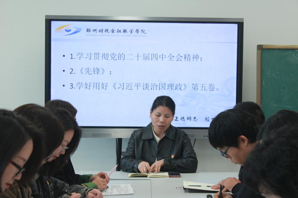 接着,孙晓景副书记领学《中国共产党第二十届中央委员会第四次全体会议公报》主要内容。会议重点围绕“激发全民族文化创新创造活力,繁荣发展社会主义文化”这一重要论述,结合基础部在通识教育与文化素养培育方面的职能定位,深入阐释文化创新对教育工作的指导意义,引导党员教师思考如何将文化育人理念有机融入教学实践。