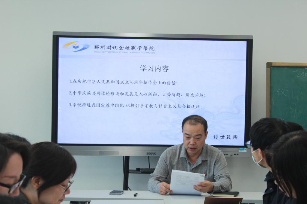 最后,学习聚焦中共中央政治局第二十二次集体学习(主题:系统推进我国宗教中国化)相关精神。赵主任带领教职工们深入把握习近平总书记提出的核心要求:以社会主义核心价值观为引领增进“五个认同”、推动宗教与中华优秀传统文化相融合、支持宗教界自我变革、依法治理宗教事务。大家深刻认识到“积极引导宗教与社会主义社会相适应”的重要性,表示将准确把握宗教工作政策导向,为筑牢校园和谐稳定根基提供有力支撑。