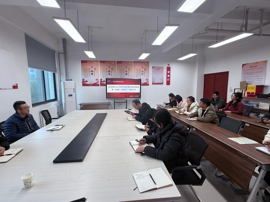 【通讯员:刘振宇】2025年3月18日经济管理系在明德楼311会议室隆重召开师德师风建设部署会暨“立德树人·铸魂育人”专题理论学习会。院长徐熠明、党支部书记田振停出席会议并讲话,学院全体教职工参加会议,共同探讨新时代师德师风建设的新路径与新要求。