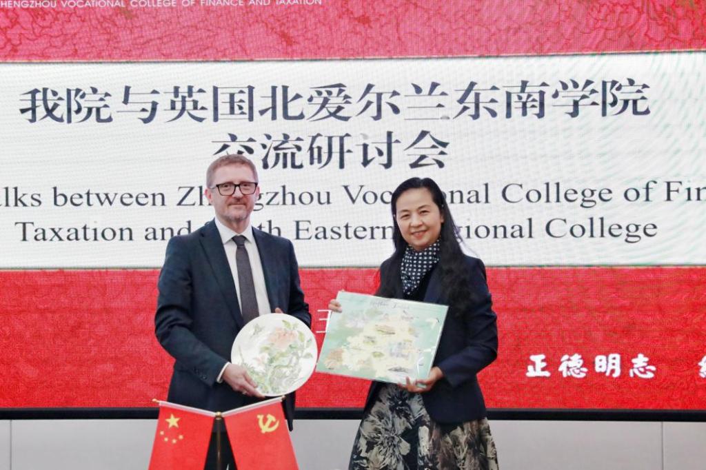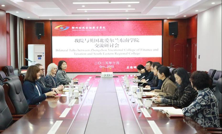 【通讯员:白若羽】为拓展学校专业发展的国际化视野,促进中英教育理念的交流互鉴,10月16日,我校与英国北爱尔兰东南学院代表团举行交流研讨会。北爱尔兰东南学院校长托马斯·罗伯特·马丁(Thomas Robert Martin)、副校长希瑟·维拉·麦基(Heather Valerie McKee)及国际发展高级经理伊莱恩·麦基翁(Elaine Mckeown)一行到访我校。副校长耿聪慧出席会议,国际教育中心、教务处、智能会计学院、数字商贸学院、艺术学院及质量评价中心相关负责人参加交流。会议由国际教育中心主任胡莉莉主持。