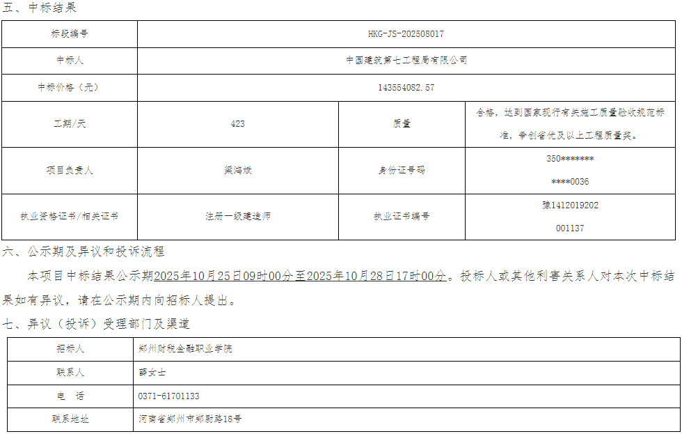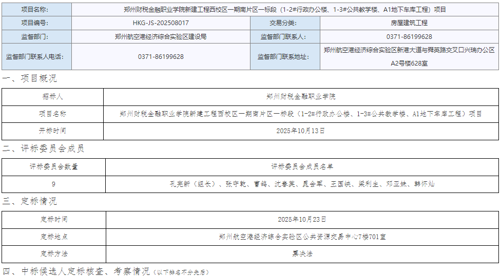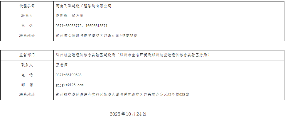 郑州航空港经济综合实验区公共资源交易中心公告链接:http://www.zzhkgggzy.cn:18082/jyxx/001001/001001005/20251024/6137b5dc-752f-4f3c-9d74-5a5d31e4d4c9.html