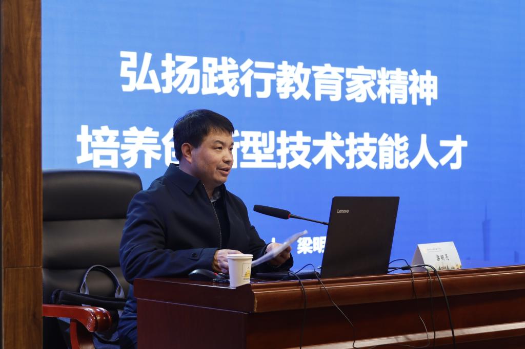梁明亮教授的专题讲座紧扣习近平总书记关于教师队伍建设的重要指示批示,对教育家精神要义和师德师风建设要求展开深度解读。他强调,教育家精神作为新时代高素质专业化教师的核心素养,既是“心有大我、至诚报国”的理想信念体现,更是教师职业生涯的最高追求与终极目标。他结合自身深耕职教领域多年的实践经历,提出师德师风并非抽象概念,而是具象化在每一堂实训课、每一次技能指导、每一场赛事帮扶中,唯有教师自身以师德为魂、以匠心为基,才能在教学中潜移默化地引导学生树立“技能报国”的职业理想,养成严谨专注、追求卓越的职业素养,最终成长为堪当民族复兴重任的时代新人。