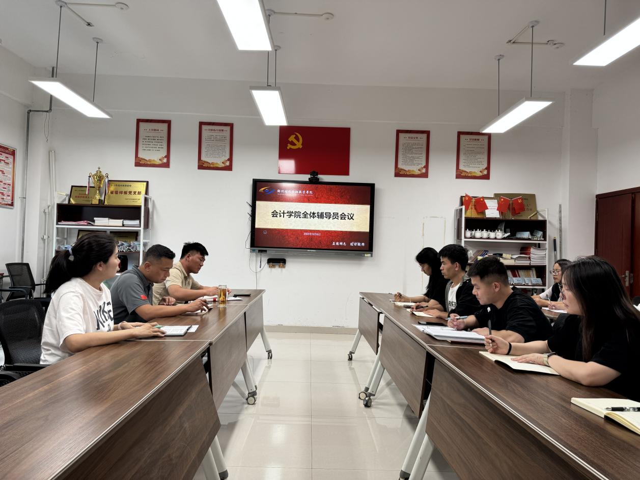 【通讯员:冉旭东】为统筹推进新学期学生管理工作,确保各项工作任务落细落实,9月6日下午,智能会计学院在明德楼205会议室组织召开全体辅导员会议。智能会计学院党总支书记薛现平、党总支副书记刘文超以及全体辅导员参会,学团办主任余留源主持。此次会议的主要内容有:
