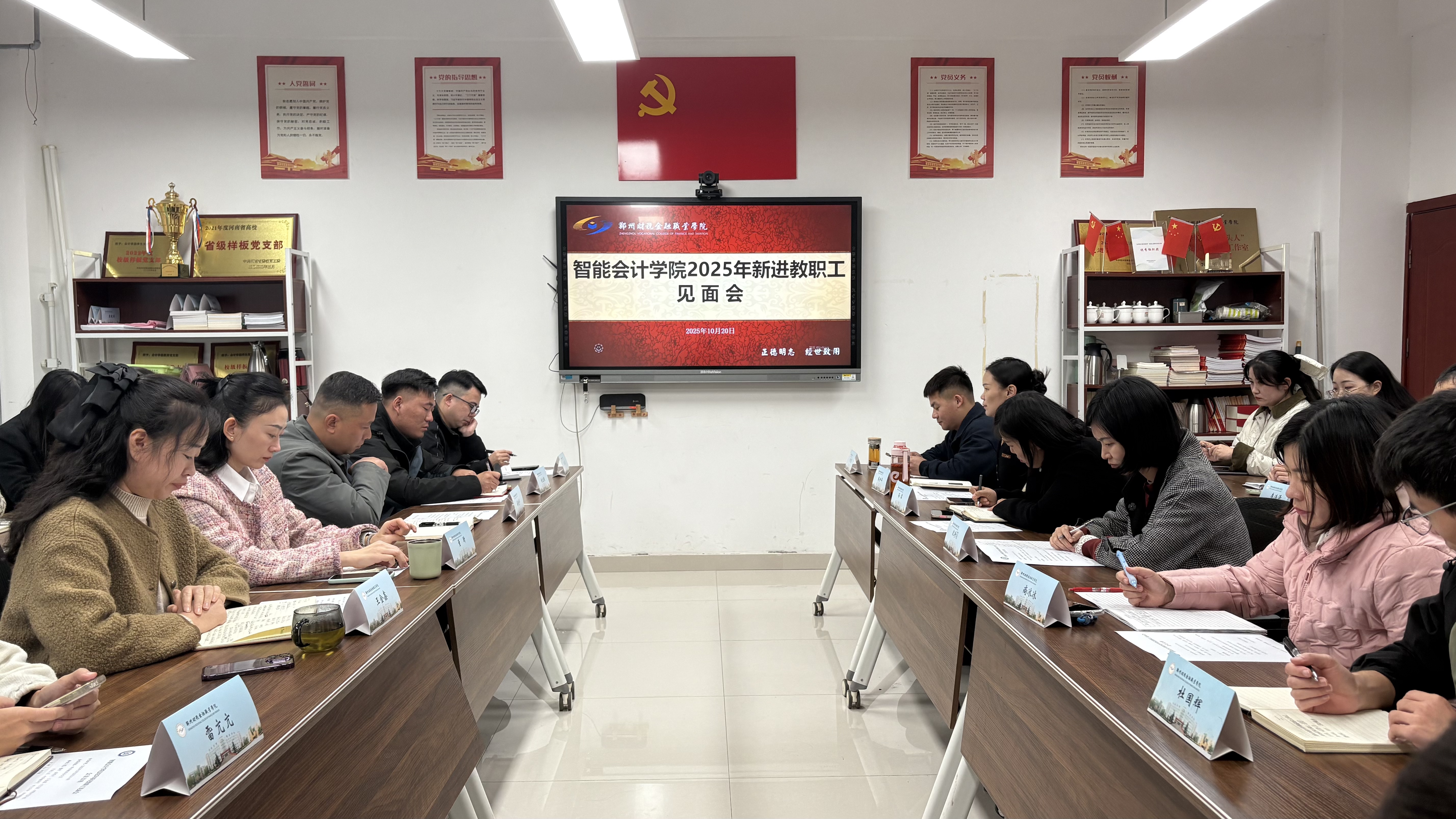 【通讯员:李雨霞】为帮助新入职教师快速融入学院温暖大家庭,明确岗位职责与发展方向,凝聚育人合力,2025年10月20日下午,智能会计学院在明德楼205会议室召开新进教职工见面会。智能会计学院院长董昕、党总支书记薛现平、副院长王金鑫、党总支副书记刘文超,及学院全体中层干部、专职辅导员、学业导师参会。会议由学团办主任余留源主持。