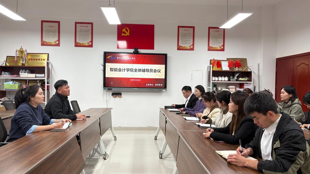 【通讯员:李浩泽】为进一步梳理各年级的学生工作推进情况、规范辅导员履职流程、提升学生管理服务质效,10月20日下午,智能会计学院在明德楼205会议室召开全体辅导员会议,党总支副书记刘文超以及全体辅导员参会,会议由学团办主任余留源主持。