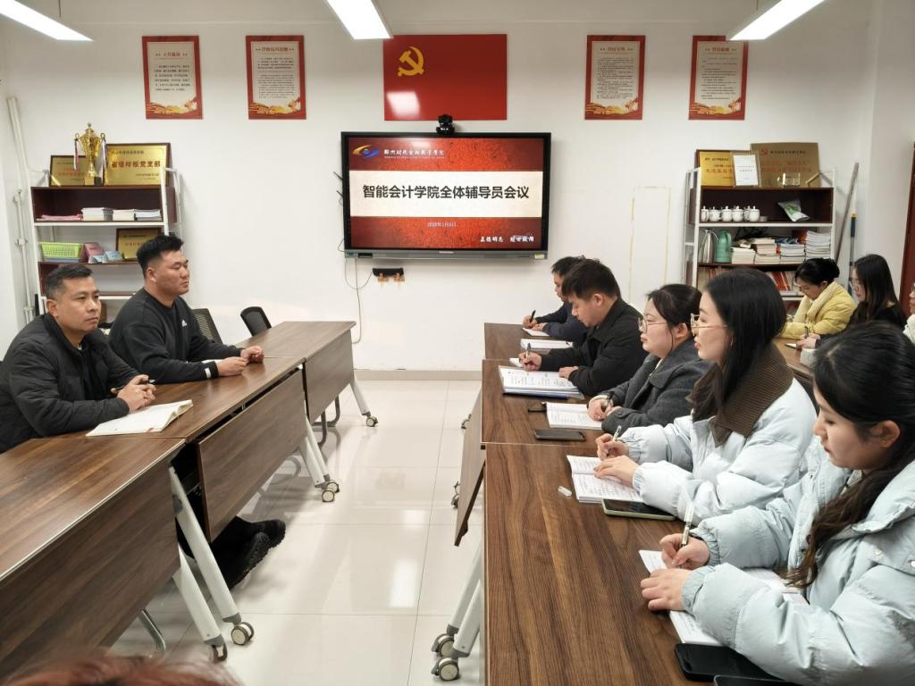 【通讯员:冉旭东】为进一步提质增效推进学生工作,精准擘画下一阶段工作蓝图与实施路径,1月5日,智能会计学院在明德楼205会议室召开全体辅导员会议。智能会计学院党总支书记薛现平、副书记刘文超及全体专兼职辅导员参会。