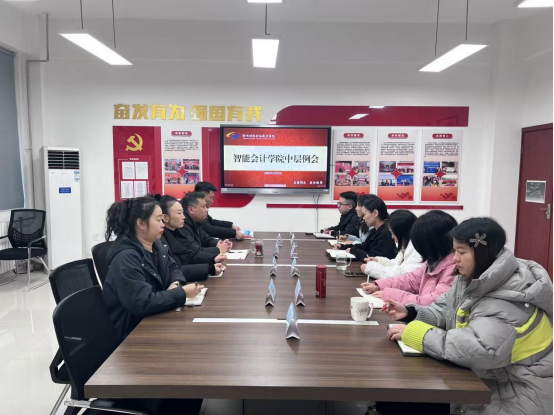 【通讯员:魏佳伲】12月22日下午,智能会计学院在明德楼209会议室召开秋季学期第十六周中层例会,智能会计学院院长董昕、党总支书记薛现平、副院长王金鑫、党总支副书记刘文超及全体中层参加了此次会议。会议由党政办公室主任刘俊主持。