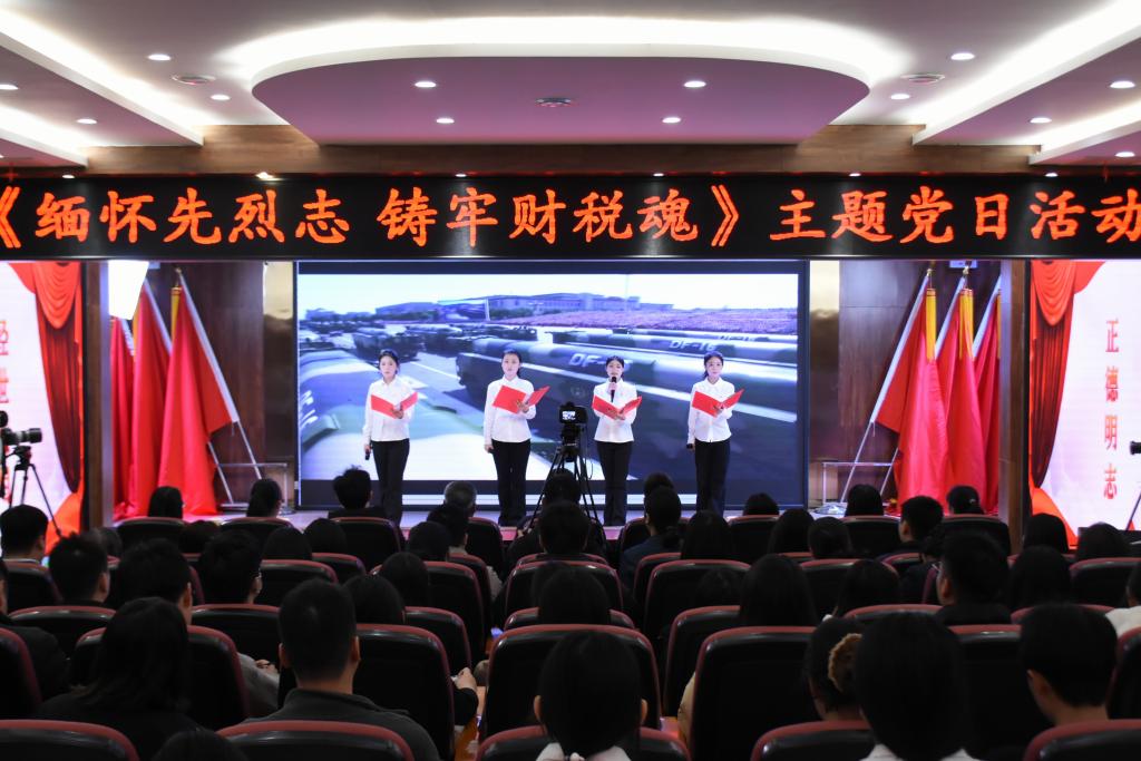 伴随着《中华人民共和国国歌》国歌的响起,主题党日活动正式开始。全体人员肃立齐唱,激昂的旋律激荡起深沉的家国情怀。学生代表深情朗诵《铭记·前行》,以铿锵之声回望烽火岁月,表达对先烈的无限追思与继承遗志的坚定决心。