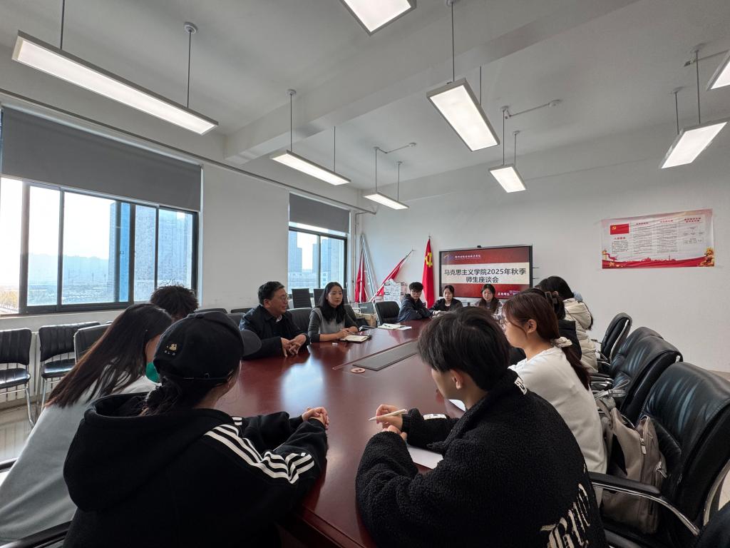 【通讯员:兰萌萌】为切实贯彻立德树人的核心任务,进一步加强思政课建设,提升思政育人实效。11月13日下午,马克思主义学院于厚德楼610会议室组织召开2025年秋季学期思想政治课程师生座谈会。参与此次会议的有马克思主义学院院长孔继海、副院长李靖宇、教学秘书兰萌萌以及学生代表。