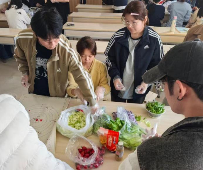 实践教学启动前,刘慧蒙老师组织各学生小组组长召开专题讨论会,围绕“成本可控、流程可测、贴近餐饮实际”原则,共同制定实践教学专属菜单。从食材品类选择、用量预估到成本预算,组长们结合课堂所学的“食材定价制”“成本构成要素”等理论知识深入研讨,在思维碰撞中明确实践方向,提前将理论转化为实践规划,充分践行“善思”“勤学”的学风要求。