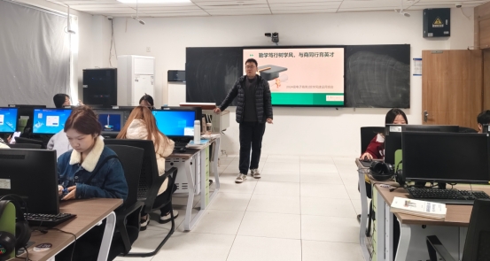 班会伊始,郭江涛老师以“勤学笃行树学风,与商同行育英才”为核心,系统解读了学风建设月整体方案。结合学院数字商贸专业特色,他从“思想引领、学业提升、习惯养成、实践赋能”四个维度,详细阐述活动目标任务与实施路径,重点强调“思想铸魂”是学风建设的根基。为增强理论宣讲感染力,郭老师结合数字商贸行业优秀从业者成长案例,深入剖析“勤学是专业精进之基、善思是创新突破之要、明德是职业长青之本、笃行是价值实现之路”,引导学生将个人学业发展与行业需求、国家建设紧密结合。