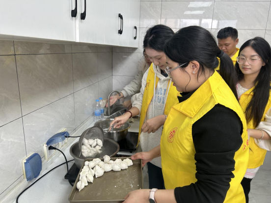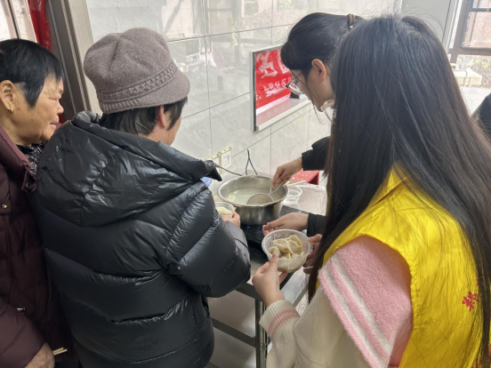 【通讯员:庞雅晴】冬至阳生,岁回律转。为深入传承中华优秀传统文化根脉,厚植“奉献、友爱、互助、进步”的志愿服务精神,深化校社联动共建机制,引导青年学子在服务基层中坚定理想信念、锤炼过硬本领,12月21日冬至佳节,数字商贸学院学生党支部“小蜜蜂”志愿者服务队,赴龙堂社区党群服务中心开展“志愿暖冬行,饺香满社区”主题共建活动,以一碗碗热腾腾的饺子为社区注入冬日温情,用实际行动书写校社同心、服务为民的青春答卷。