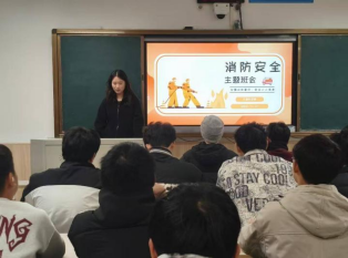辅导员老师在班会中强调消防安全是守护生命财产的重要屏障,校园作为人员密集场所,防火工作容不得半点松懈,并结合PPT展示了近年来高校宿舍违规用电、实验室操作不当引发的火灾案例,触目惊心的现场图片和详实的伤亡数据,让同学们直观感受到火灾的突发性与破坏性,深刻认识到“小隐患可能引发大灾难”的道理。