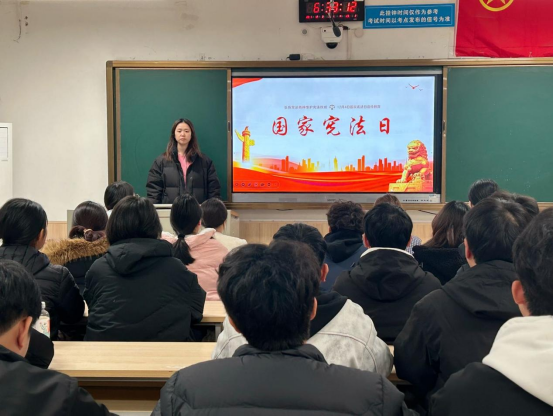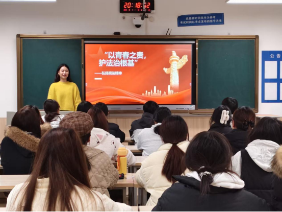 在专题讲座上,法学专业教师赵华铖结合专业特点,选取了网络安全、个人信息保护、反电信网络诈骗等与学生生活密切相关的案例,解读了《个人信息保护法》《反电信网络诈骗法》等以宪法为核心的法律体系内容,让学生深刻认识到宪法并非抽象的条文,而是贯穿日常学习生活的行为准则。针对大学生群体,老师们特别强调了宪法赋予公民的受教育权利与义务,鼓励学生珍惜学习机会,在法治轨道上规划人生、追逐梦想。