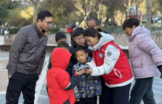 在最受期待的实践环节,孩子们分组上阵,在“小红帽”志愿服务队志愿者的专业指导下,亲身参与体验无人机的起飞、悬停、降落等操作。随着一架架无人机腾空而起,孩子们深刻体验到了飞行的乐趣,并且收到了专属航拍照片,定格下了这段难忘的科技体验之旅。