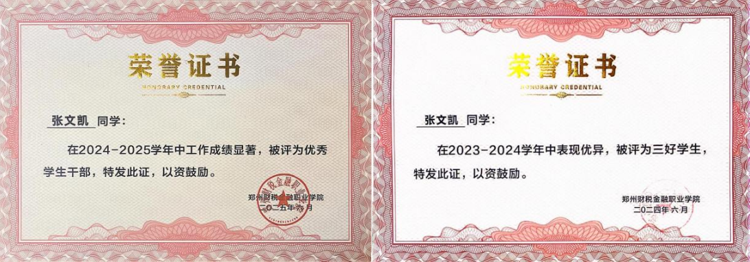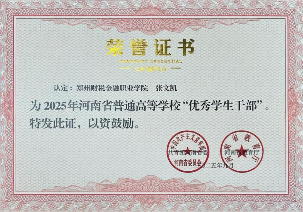 为者常成、行者常至,张文凯同学初心如磐、笃行致远,以学业上的深耕不辍、品德上的正心修身、实践中的勇毅争先,淬炼出全面过硬的综合素养。这份沉甸甸的荣誉,既是对他过往奋进之路的最高褒奖,更是他以青春之力诠释新时代学子责任与担当的生动注脚,终成激励朋辈学子逐光前行的奋进标杆。