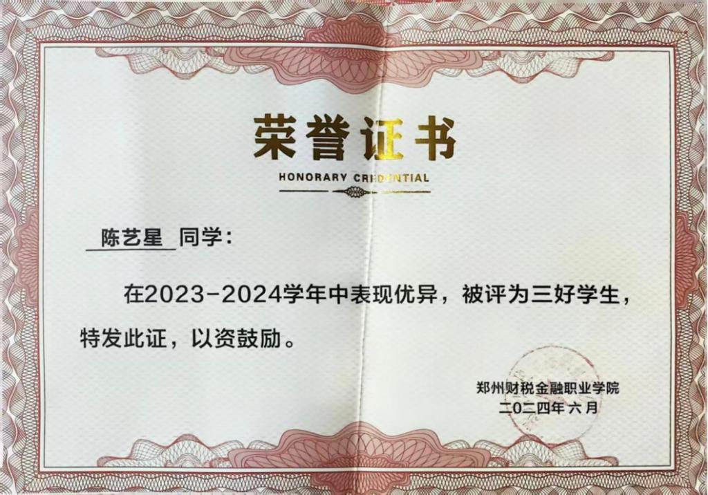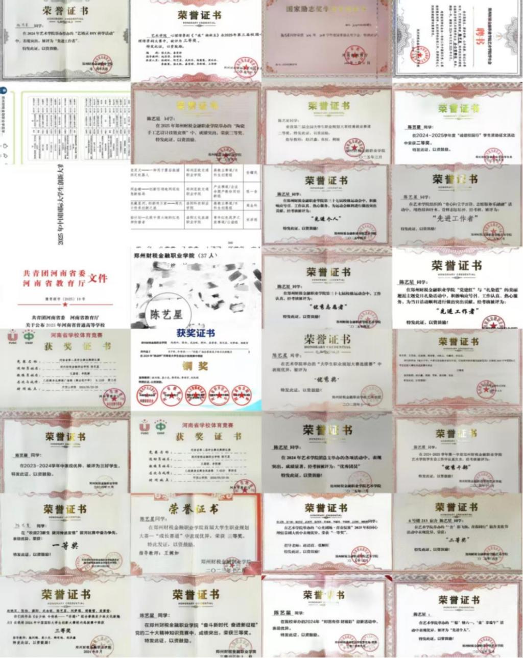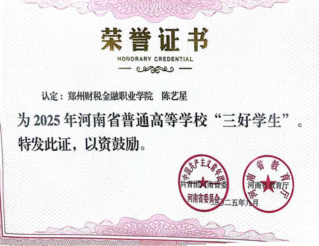 心有光芒者终会璀璨绽放。在郑州财税金融职业学院的菁菁校园中,23级陶瓷设计与工艺一班学生陈艺星以热忱为帆、坚持为桨,在艺术求学路上深耕细研、勇攀高峰,用30余项省校级荣誉书写青春华章,成为当之无愧的国奖榜样。