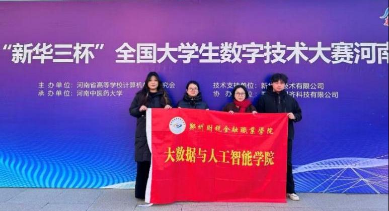 【通讯员:许慧卿】2025年12月14日,“新华三杯”全国大学生数字技术大赛河南省级赛在河南中医药大学圆满落幕。本次大赛由河南省高等学校计算机教育研究会主办,共吸引来自全省38所院校的800余名选手同场竞技。我院参赛学生凭借过硬的专业基础和出色的实践能力,荣获一等奖2项、三等奖1项。