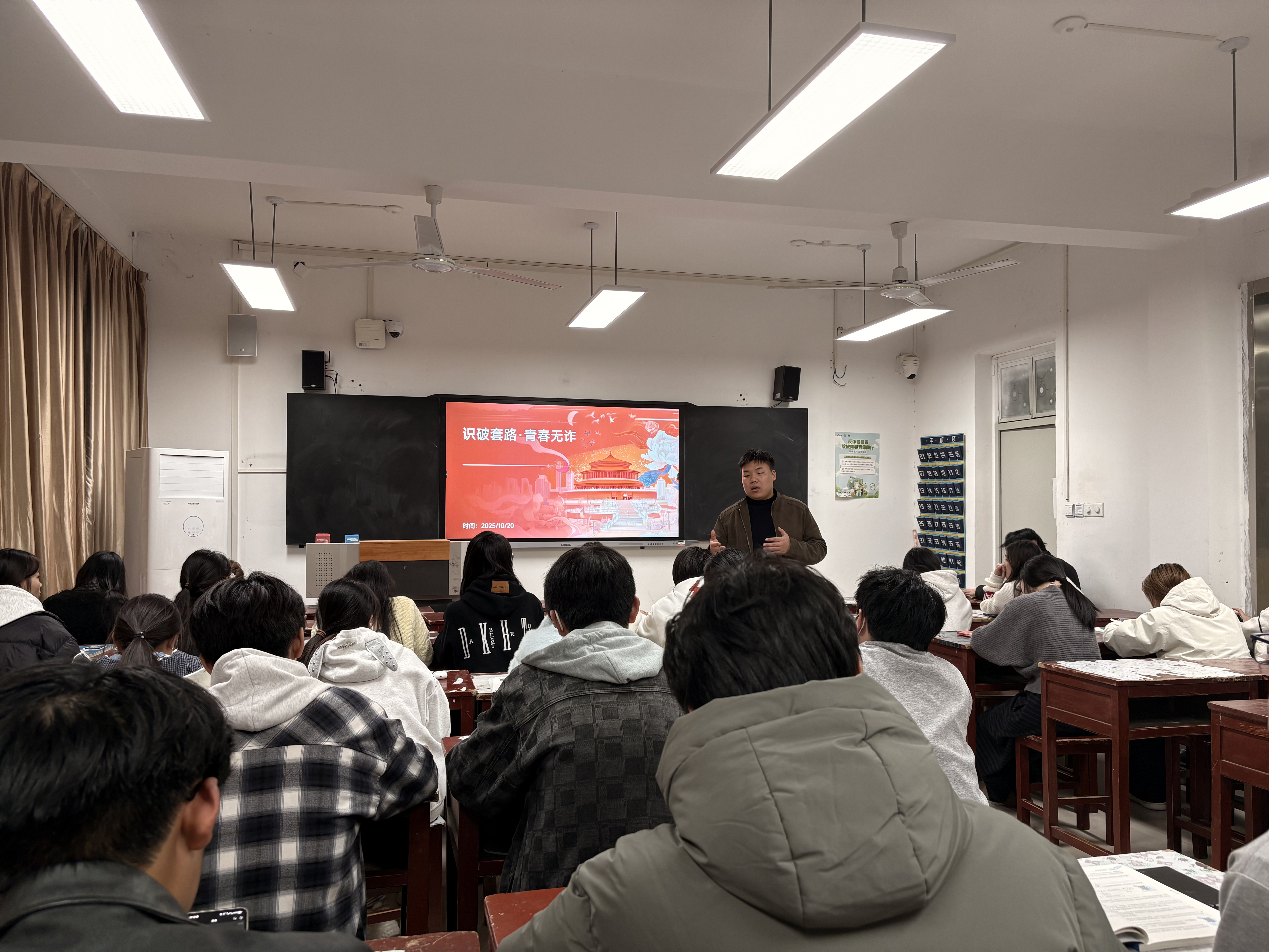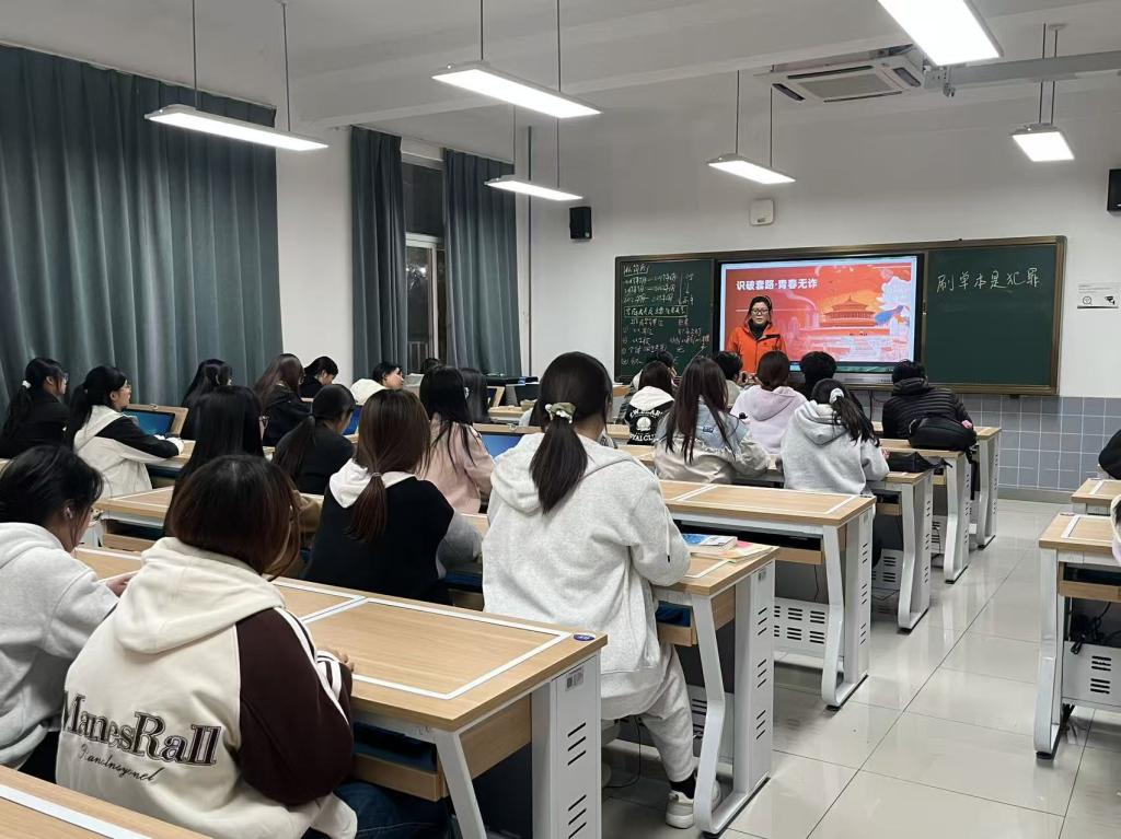 班会伊始,辅导员首先列举了“刷单返利”、“出租出借银行卡与社交账号”、“黄牛代购”、“游戏代练”、“美容贷”等多种高发诈骗类型。为加深理解,现场播放了反诈视频,通过一系列真实案例,生动拆解了诈骗分子的话术套路与心理诱导技巧,让同学们直观感受骗局的全貌。