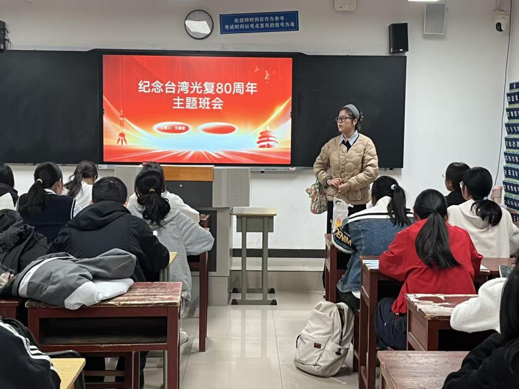 本次纪念台湾光复80周年主题班会不仅引导学生“铭记历史、缅怀先烈、珍爱和平、开创未来”,更传递了学校和老师对学生的殷切期望,进一步激发师生的爱国热情和民族自豪感,增强了师生国家认同感、归属感和使命感,为中华民族伟大复兴的中国梦凝聚强大精神力量。
