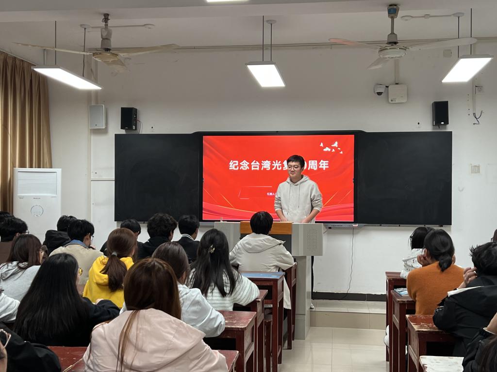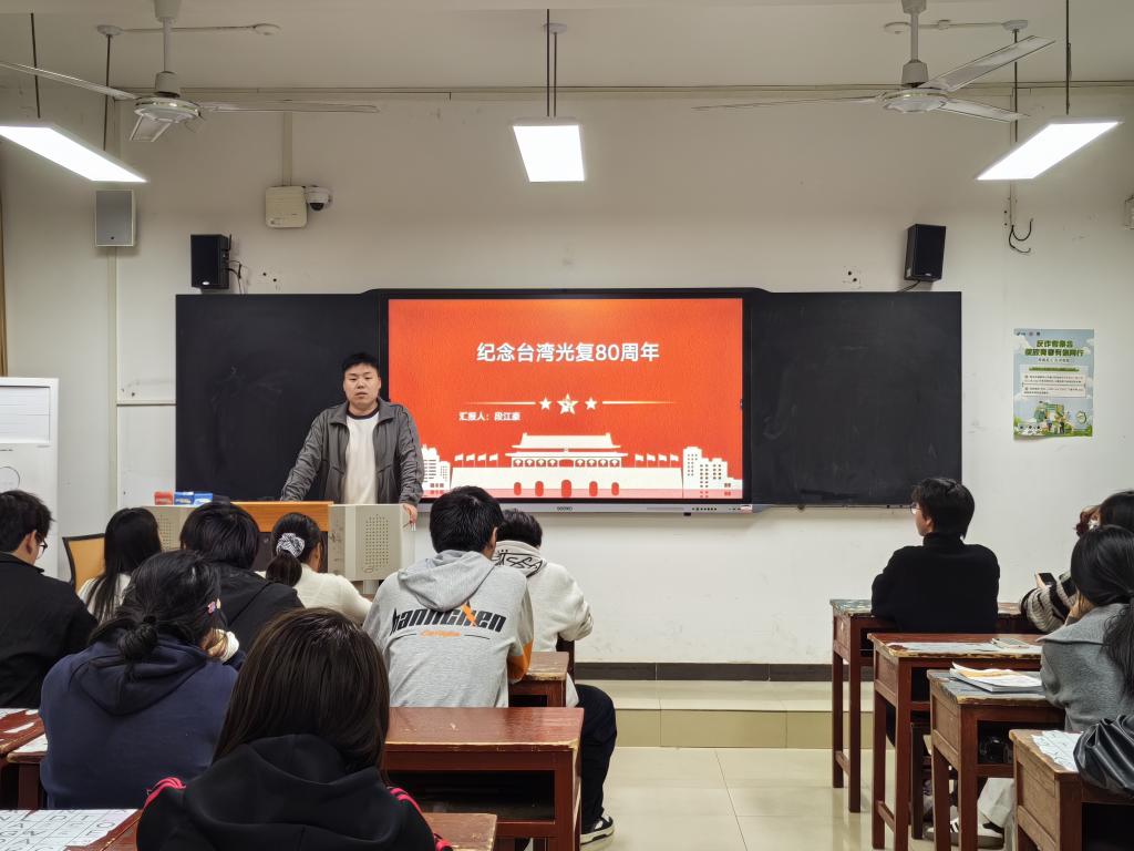 班会伊始,辅导员老师们首先简要介绍了台湾光复的历史背景,强调台湾是中国不可分割的一部分,台湾光复是中国人民抗日战争伟大胜利的重要成果。随后,通过播放历史纪录片、讲述英雄故事、组织知识问答等多种形式,向同学们详细讲解了台湾光复的历史背景和过程。同学们踊跃发言,分享学习体会,表达对先辈的敬仰和对祖国统一的坚定信念。
