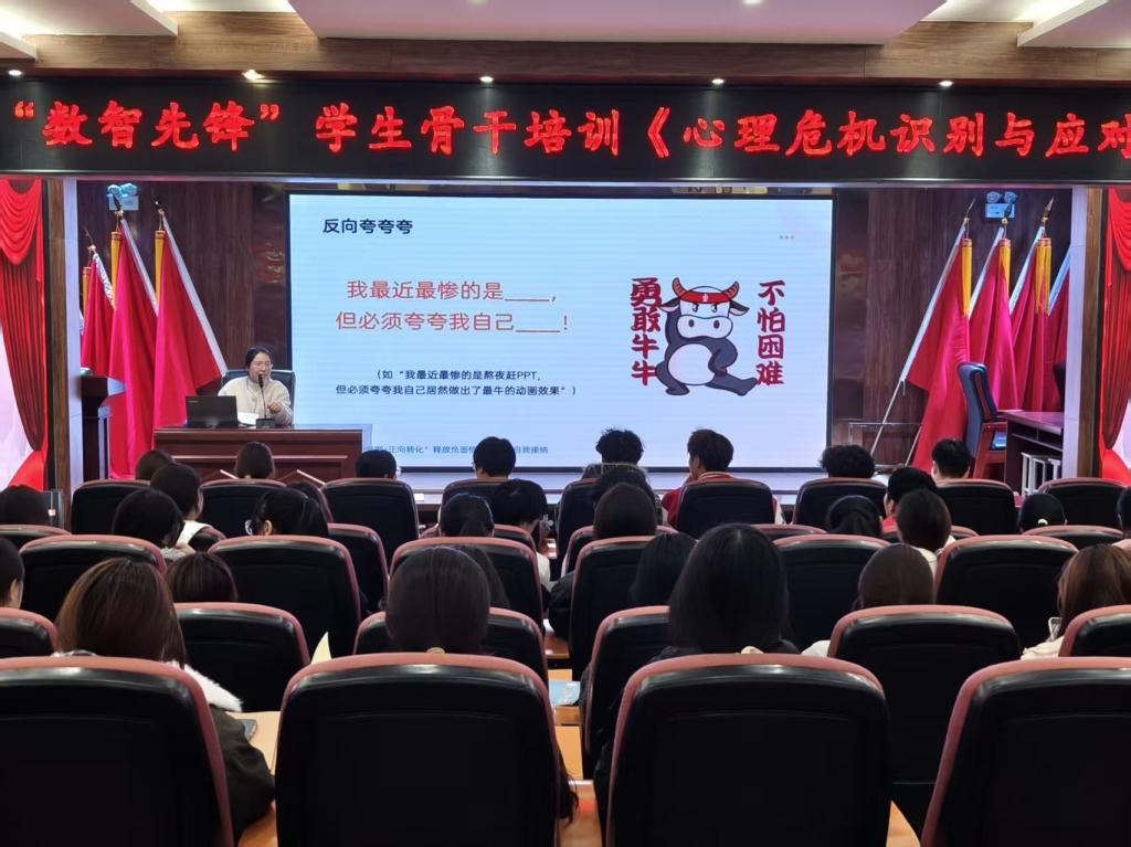 【通讯员:王通达】为进一步提升学生的心理健康素养与危机应对能力,充分发挥学生骨干在朋辈互助、师生桥梁中的关键作用,12月9日,大数据与人工智能学院于思政报告厅面向我院“数智先锋”学生骨干举行了《心理危机识别与应对》专题培训。