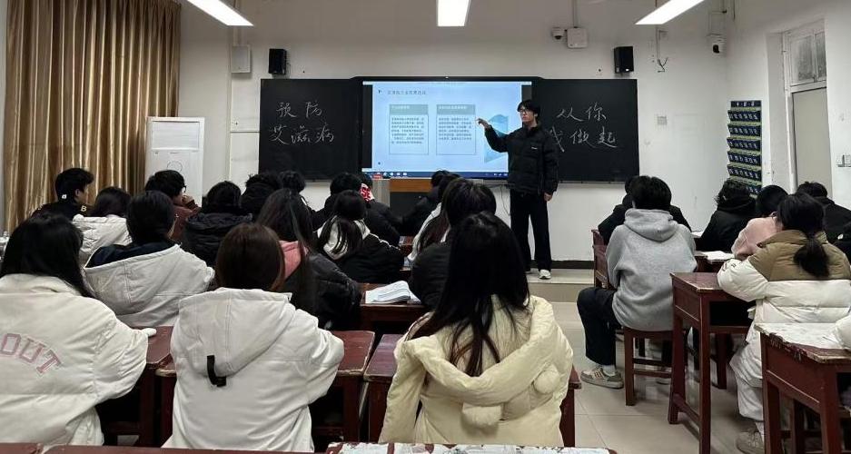 当天下午,学院首先面向全体学生干部开展了艾滋病防治专题培训,系统讲解艾滋病传播途径、预防措施等核心知识,为学生骨干后续开展宣讲打下坚实基础。培训结束后,各班学生干部迅速响应,结合所学内容,发挥专业特长,运用图文处理、信息可视化等技能,集体制作了系列主题鲜明、内容严谨、形式生动的防艾宣传课件。当晚,学生宣讲员分赴各班级,在晚自习期间开设“防艾微课堂”,围绕传播途径、日常接触无风险、科学防护方法等重点内容,用同龄人易于接受的语言进行讲解,引导同学们树立科学防艾观念、消除歧视误解。