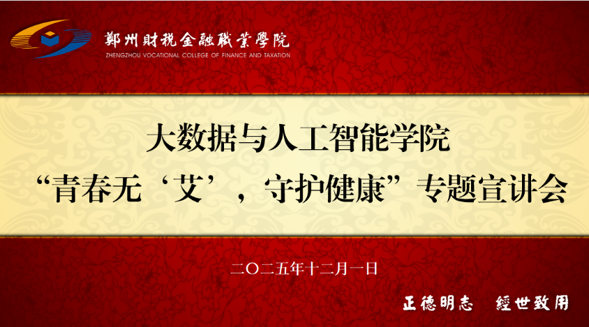 【通讯员:王珊慧】2025年12月1日是第38个“世界艾滋病日”。为普及艾滋病防治知识,增强我院学子健康责任意识,人工智能与大数据学院于12月1日组织开展“青春无‘艾’,守护健康”专题宣传教育系列活动。本次活动突出学生主体作用,创新采用“骨干培训—朋辈宣讲”模式,取得良好教育成效。