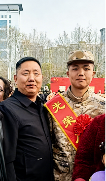 入伍感言:身披戎装,奔赴征程,告别家乡与亲人,心中有不舍,更有坚定与荣光。我将把最美青春献给军营,以军人标准严格律己,刻苦训练、严守纪律、勇挑重担,用汗水锤炼钢铁意志,用行动守护家国安宁。不负时代,不负韶华,努力成长为合格军人,为国防事业奉献全部力量!