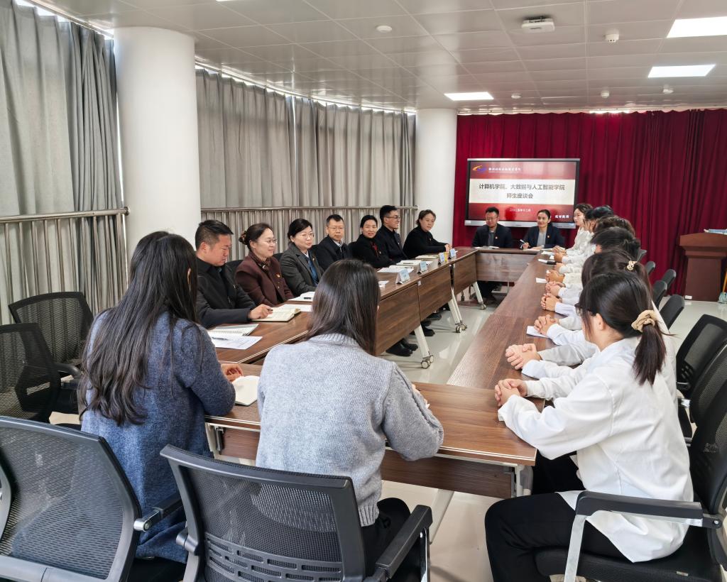 【通讯员:韩委轩】为深入贯彻落实党的二十届四中全会精神,扎实推动立德树人根本任务,持续培育优良学风,12月11日,计算机学院、大数据与人工智能学院在明德楼321联合举办学风建设师生座谈会,并同步开展校领导走访学生宿舍活动。校党委副书记董娣带队深入一线调研指导,两院党政负责人、教师代表及学生代表共同参与,通过“座谈交流+实地走访”相结合的方式,共同探讨学风建设新路径。
