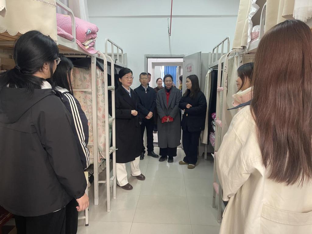 座谈会结束后,董娣副书记一行实地走访校园,并深入学生宿舍,与同学们亲切交谈,细致了解他们的学习进展、生活适应情况及未来发展规划。她叮嘱同学们要合理安排时间,保持良好作息,携手营造和谐向上、互促共进的宿舍氛围,让宿舍成为滋养身心、共同成长的“学习型社区”。
