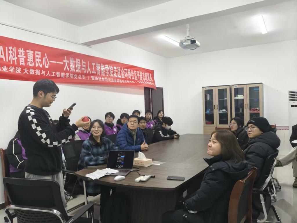 【通讯员:韩委轩】为深化校社合作,推动人工智能知识在基层普及,提升社区居民数字素养与智能生活能力,12月24日,大数据与人工智能学院以党建为引领,组织师生党员志愿者走进金环路社区,开展“AI科普进社区”志愿服务活动,助力居民跨越数字鸿沟,畅享科技便利。