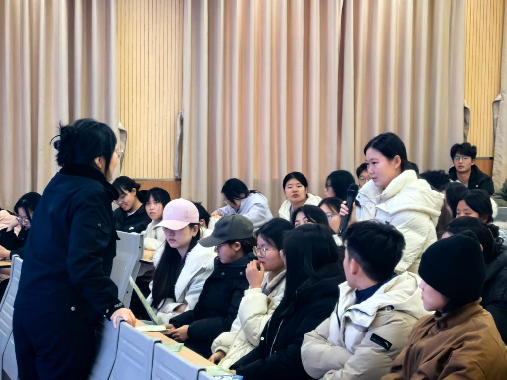 讲座中,张明月民警结合大学生社会经验相对不足、易成为诈骗分子目标的群体特征,以近年来高发的校园诈骗真实案例为切入点,深入浅出地拆解了多种诈骗套路。针对寒假期间学生网购频繁、出行集中、社交活动增多的特点,民警重点剖析了冒充客服退款、刷单返利、虚假网贷、游戏账号交易、冒充电商平台退票改签等各类高发骗局,详细讲解了诈骗分子“小额利诱、信息套取、步步诱导”的作案逻辑,并特别提醒同学们:诈骗分子常利用假期节点编造虚假信息,凡是要求“脱离官方平台操作”“提供验证码”“先转账再办事”的,均需高度警惕。