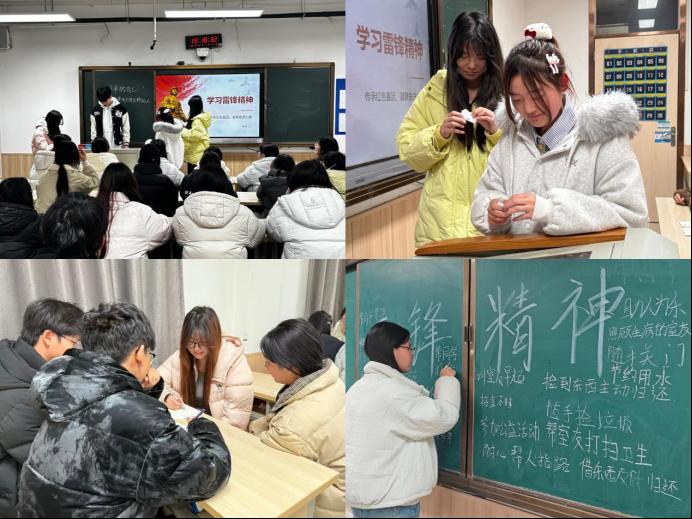 班会上,各班级围绕雷锋同志的感人事迹,深入解读新时代雷锋精神的时代内涵与实践路径,引导同学们将雷锋精神内化于心、外化于行,从认真听好每一堂课、主动伸出每一次援手、守好每一条纪律、做好每一件小事做起,将理想信念转化为脚踏实地的行动,努力成为有理想、敢担当、能吃苦、肯奋斗的新时代青年,让雷锋精神在薪火相传中焕发新的光芒。