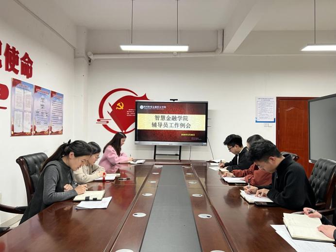 【通讯员:李姗姗】为进一步夯实学生工作基础,提升辅导员队伍管理服务效能,统筹推进各项学生工作有序开展,3月25日,智慧金融学院召开辅导员工作例会。党总支书记赵碧漪、学团办主任张航以及全体辅导员参加了会议,会议全面总结3月份学生工作开展情况,并对4月份重点工作进行细致安排。