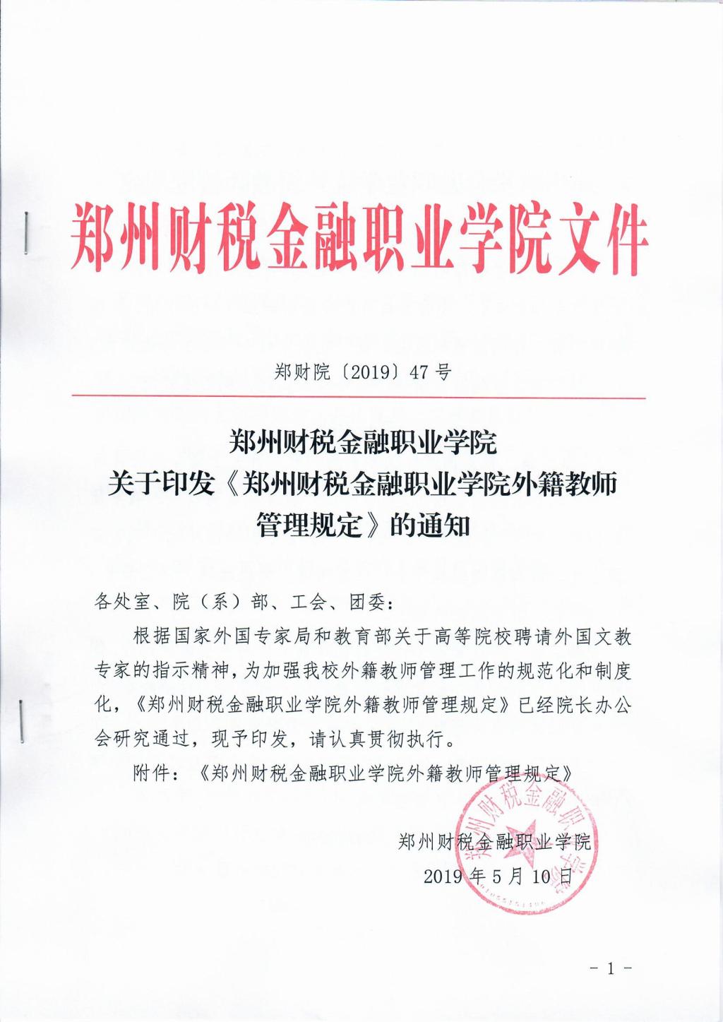 郑州财税金融职业学院外籍教师管理规定